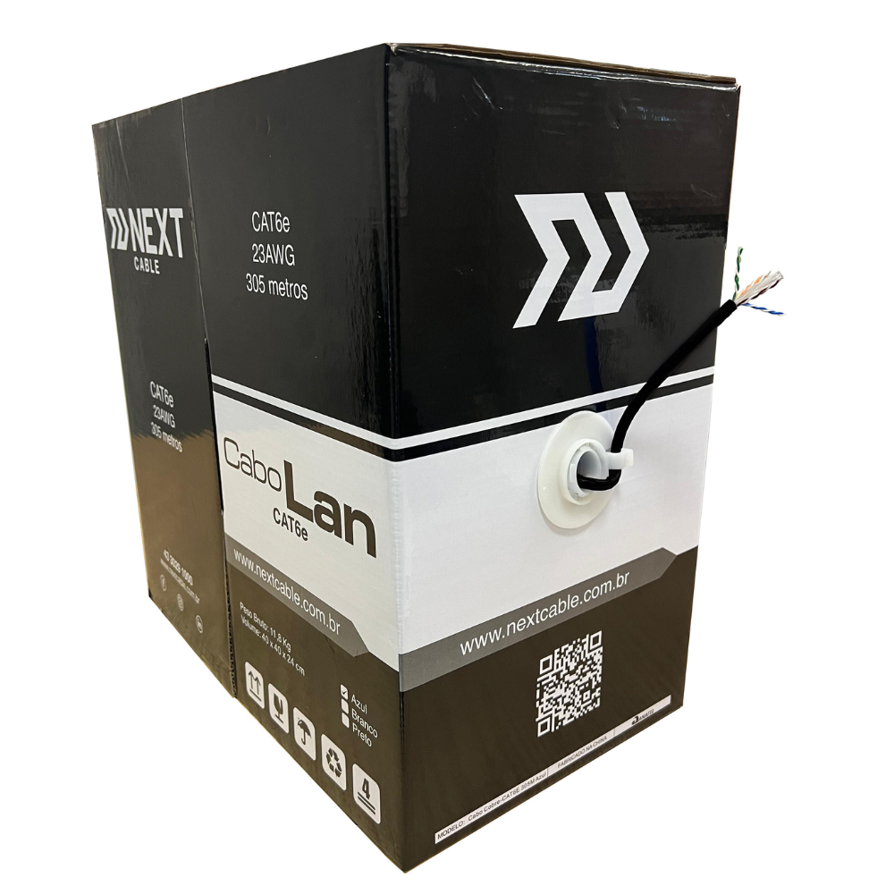 CABO DE REDE CAT6E 305M PRETO 100% COBRE