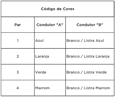 PAR: Os condutores isolados são reunidos dois a dois, formando o par. Os passos de torcimento devem ser adequados, de modo a atender os níveis de diafonia previstos e minimizar o deslocamento relativo entre si.