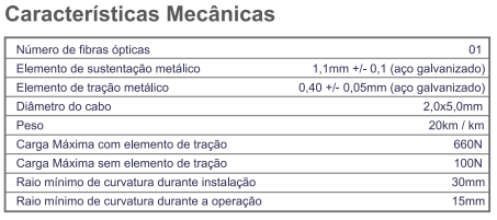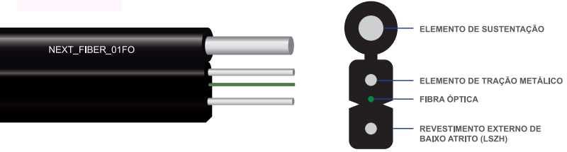 O cabo óptico Drop Flat da Next utiliza fibra óptica monomodo BLI G.657 A2 de baixa sensibilidade à curvatura, com revestimento externoanti-UV, baixo atrito (AR) baixa emissão de fumaça e de gases tóxicos não halogenados (LSZH). Ele ainda possui elementos de tração em aço que possibilitam sua instalação em dutos sem utilização de guia, e também o elemento de sustentação (AS) que possibilita a sua instalação aérea em vãos de até 80m.
