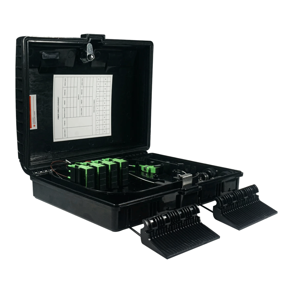 De fácil manutenção e ampliação de capacidade, ela reúne emenda, divisão, distribuição, armazenamento e conexão da fibra em uma caixa de proteção adequada para construção da rede, sendo à prova d’água com proteção anti-UV e chave para trava.