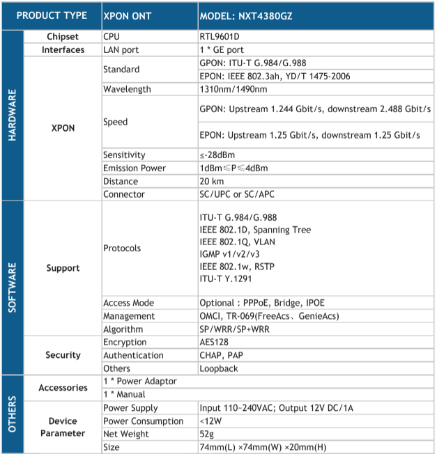 ONU GPON/EPON NXT4380GZ Next